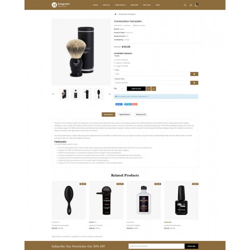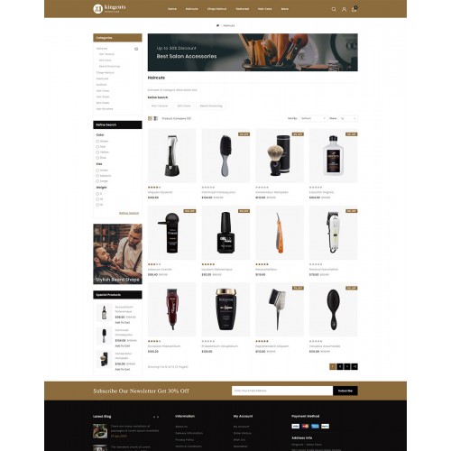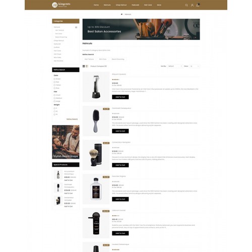Kingcuts Salon Store opencart responsive theme is specially design for salon, spa, hair, beauty, makeup, fashion, style, barbershop, haircut, hairstyle, skincare, facial, barber, minimal and multipurpose stores. It's 100% responsive which means this theme will display beautifully for each device and browser.