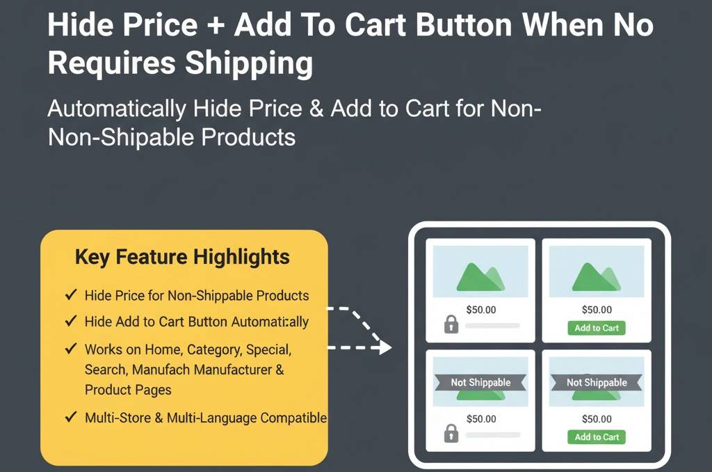 Hide Price + Add To Cart Button When No Requires Shipping – OpenCart 2.x + 3.x + 4.x